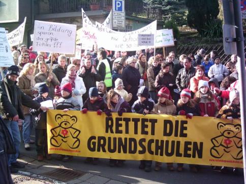 Viele engagierte Eltern hatten alles Erdenkliche versucht, die Grundschul-schließungen zu verhindern. Selbst die Gründung der Landesinitiative „Rettet die Grundschulen“, eine intensive Pressearbeit, zahlreiche Podiumsdiskussionen, mehrere Großdemonstrationen und eine eigens zusammengestellte „Bild...ungs-zeitung“, die in jeder Kreisstadt verteilt wurde, brachte die CDU-Mehrheits-fraktion und die Landesregierung nicht von ihrem Vorhaben ab.